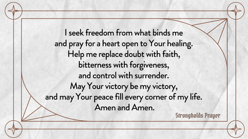 Strongholds like fear, pride, doubt, and greed are spiritual issues, and they need spiritual solutions. It’s tempting to tackle them with physical actions alone, but the battle is won through prayer, aligning our lives with God, and relying on His strength, not our own.